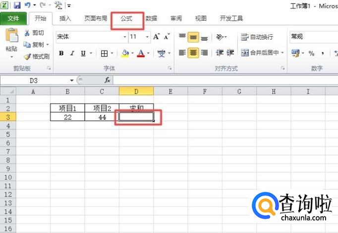 然后我们选中图示中单元格,之后点击公式;
