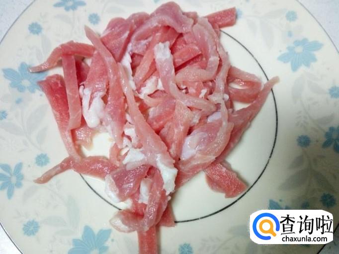 猪肉用水冲洗干净,控干水分,切成丝。