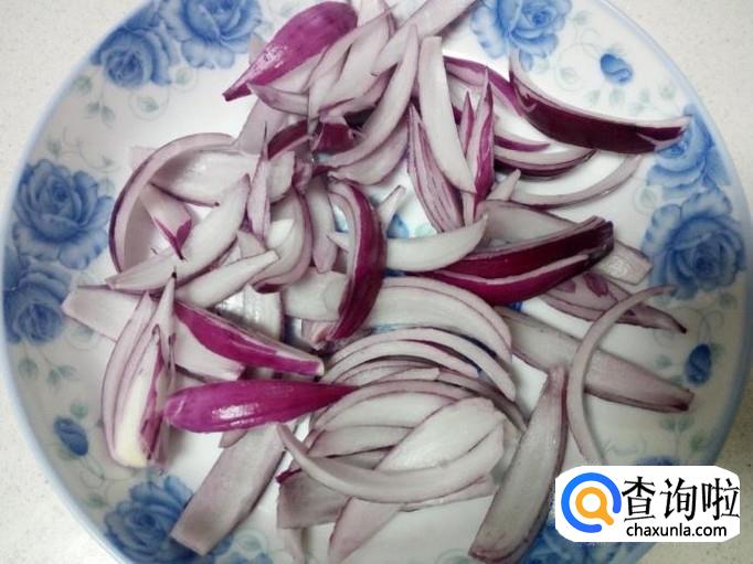 圆葱去皮,用水清洗干净,控干水分,切成丝。