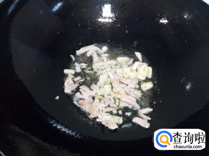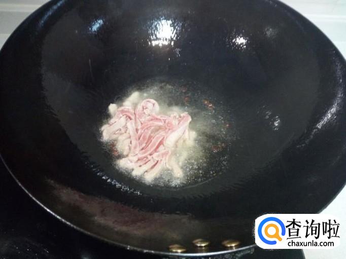 锅里放入油加热,油热后放入花椒爆锅,放入肉丝翻炒。
