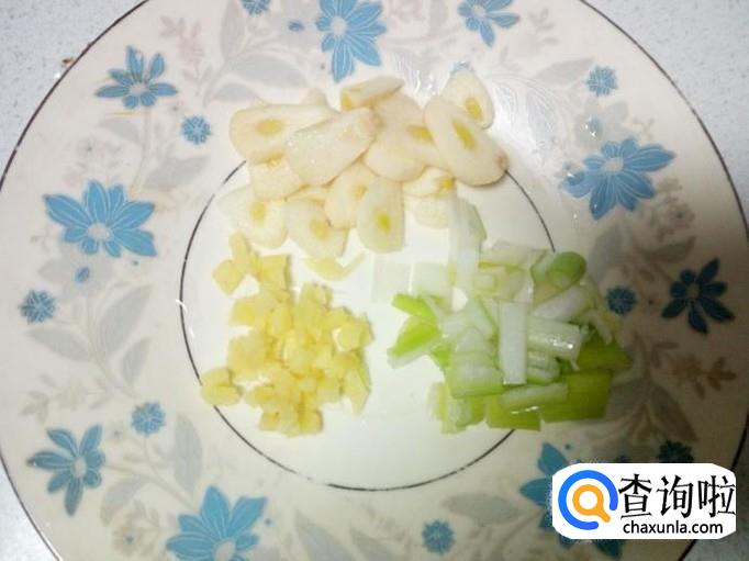 切好葱,姜,蒜,备用。