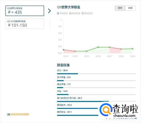 注:QS世界大学排名是世界公认最具影响力的全球性大学排名之一,主要评价指标为:学术领域的同行评价(40%)、全球雇主评价(10%)、单位教职的论文引用数(20%)、教师/学生比例(20%)、国际学生比例(5%)、国际教师比例(5%)
