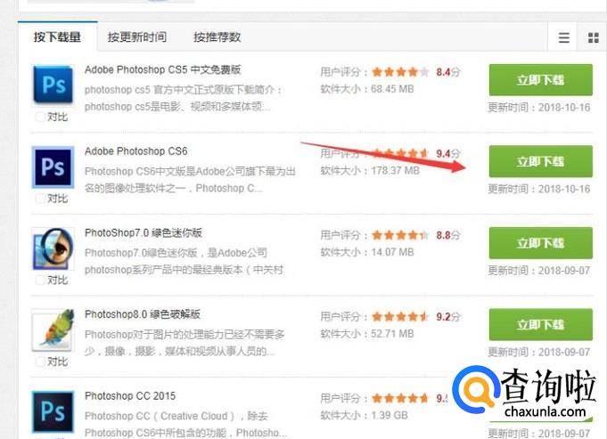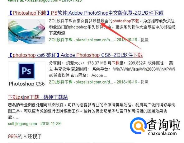 点击选择的搜索结果我们在接下来的界面内找到需要下载的ps版本后面的直接下载选项,如图所示;
