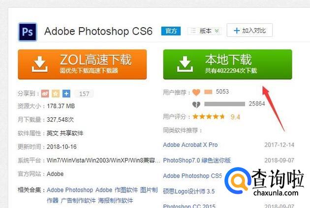 点击直接下载选项在弹出的界面里我们找到本地下载,点击之后设置下载的路径我们就可以下载ps了,如图所示: