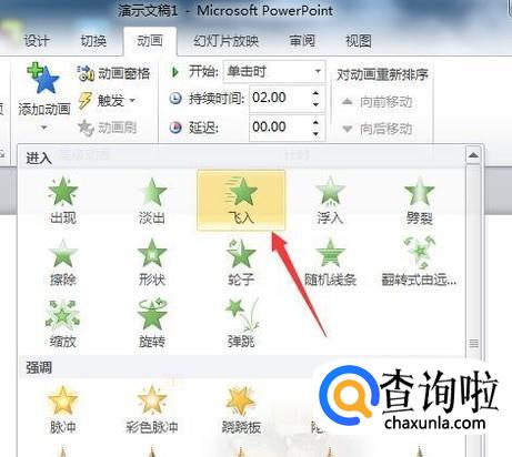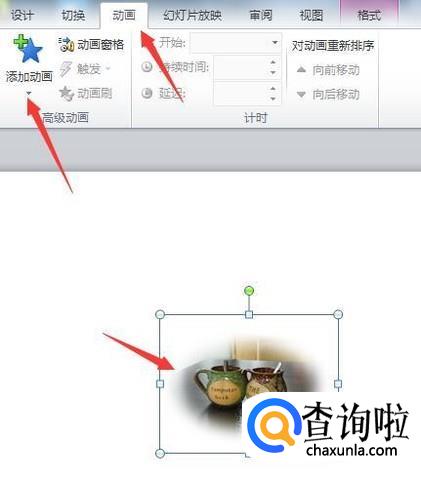 选中图片,再点击动画选项卡,在功能区中点击添加动画。
