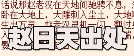 2013年11月6日,ACFUN匿名区的一个匿名版神串No.1738904写下了恶搞故事《狂霸天下之我最牛逼》。这是个由串主写下起头,网友一连段接龙的港漫风故事。故事中赵日天作为第一大反派,由于人名狂拽霸帅故事喜感形成的梗。赵日天此角色正式诞生,开创了其传奇的一生。