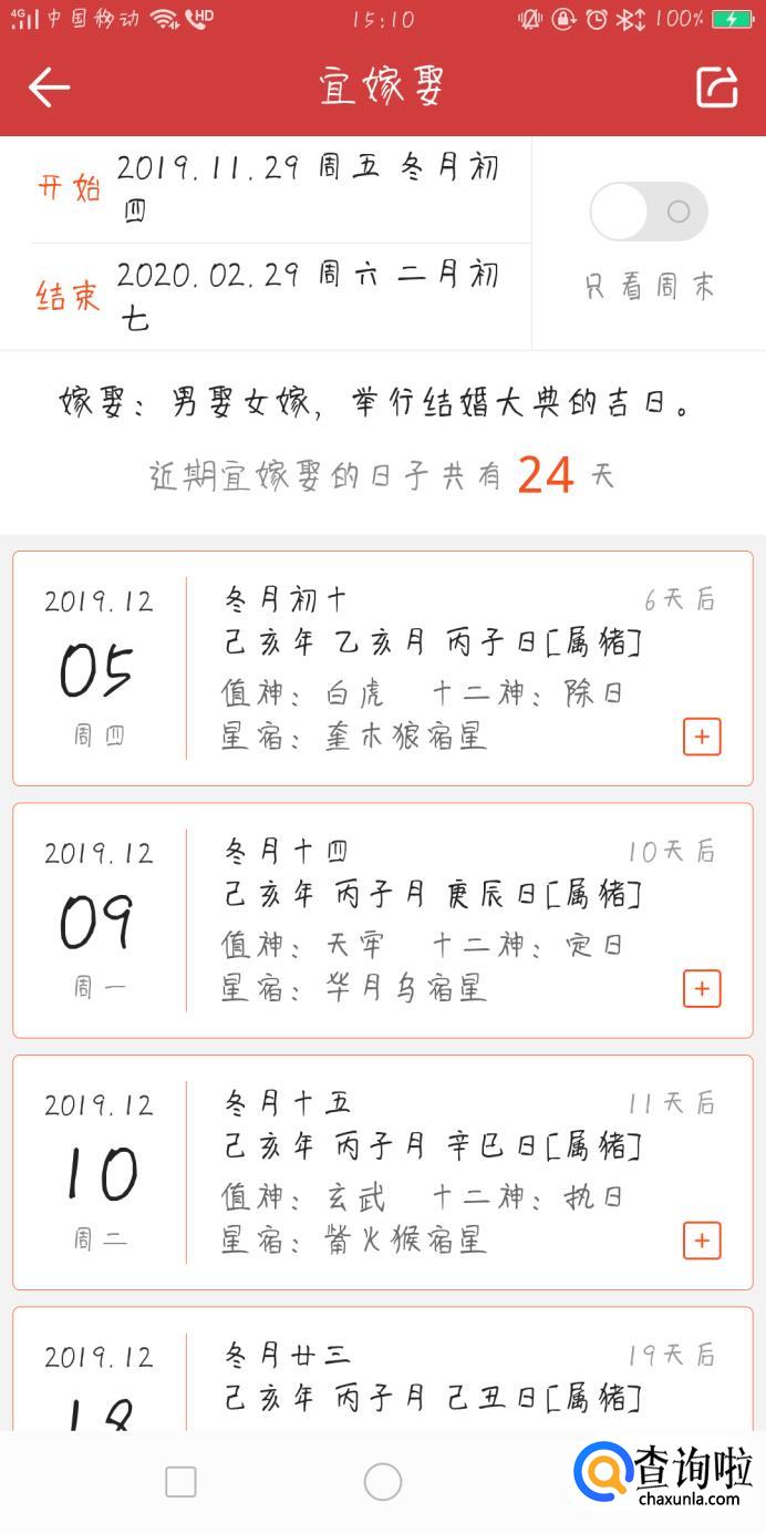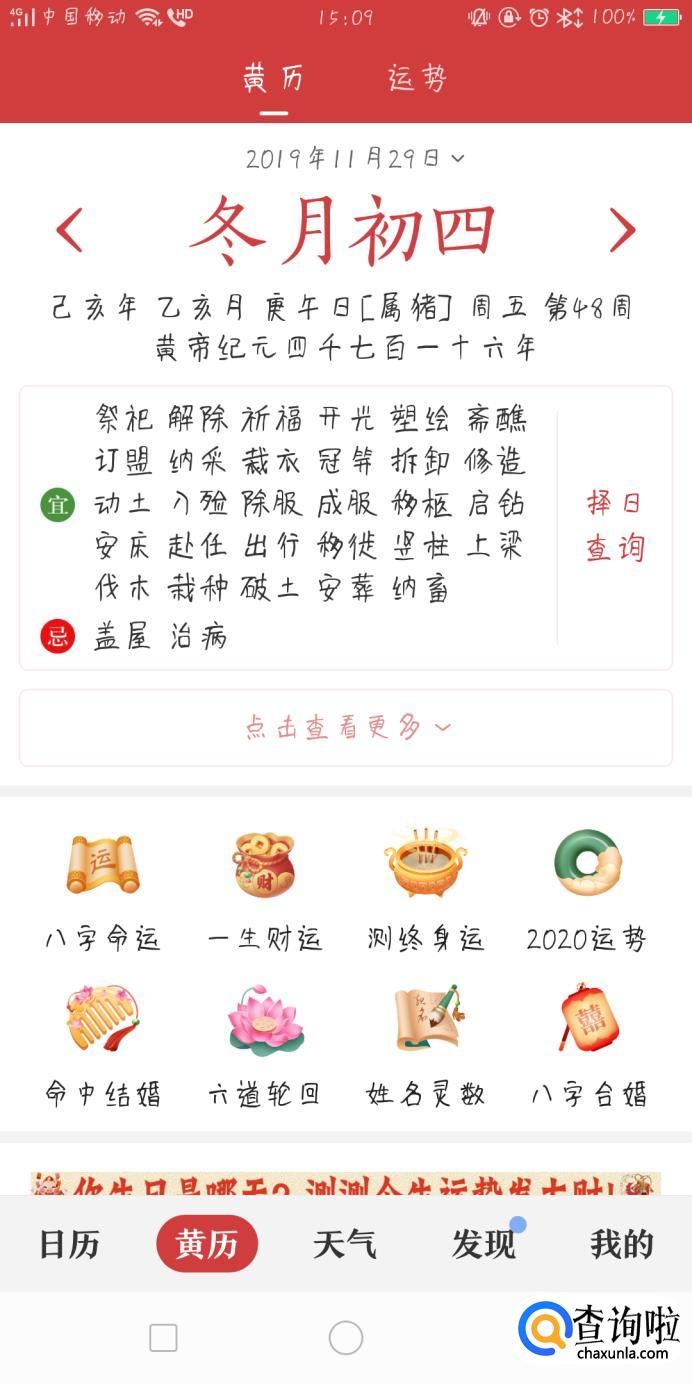 打开之后,就会有一小部分的吉日,我们可以输入自己想要的日期进行查询。