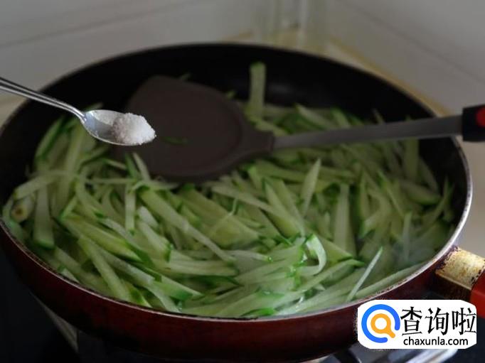 然后倒入备好的青萝卜丝,用铲子快速翻炒均匀,根据自己的喜好,可以在炒制过程中,加入适量生抽、香醋、食盐翻炒均匀,炒熟后出锅入盘就可以了。