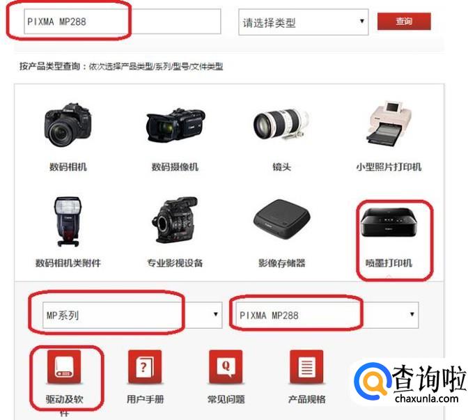 首先,我们需要进入打印机生产商的官网下载中心。可以用浏览器搜索的方式找到,我以型号佳能MP288的打印机来演示。
