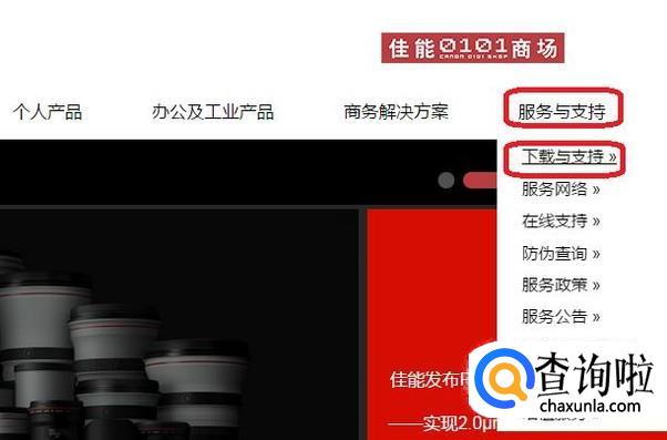 进入官网后,如图所示,我们点击“服务与支持”,然后在下拉菜单中选择“下载与支持”。