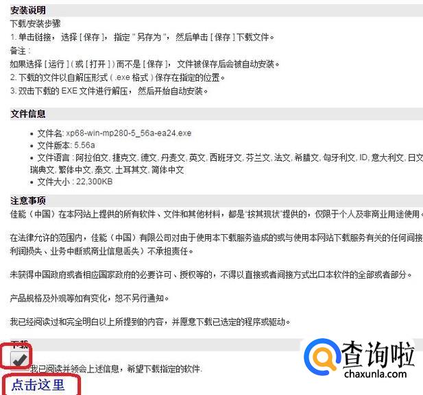 进入安装说明及注意事项页面,我们勾选“已阅读信息”,然后点击下载链接就能下载该驱动了。