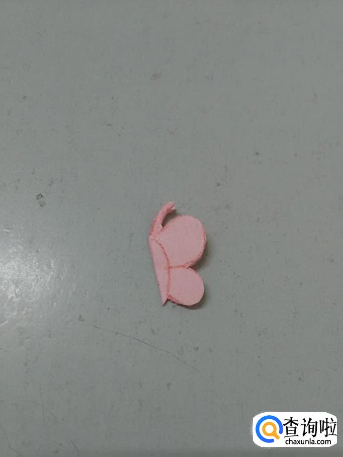 用剪刀沿着彩笔的痕迹,把半只蝴蝶剪下来。