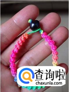 在对折线的顶端可以打个结固定,或者如果有珠子的可以穿一颗珠子在顶端,也打个结固定,这样编出来的手链更有特色。