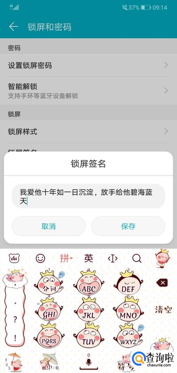 最后,进入下一个环节后你就可以看到一个写有“锁屏签名”的功能,点击它,你就可以设置你想要的签名了。