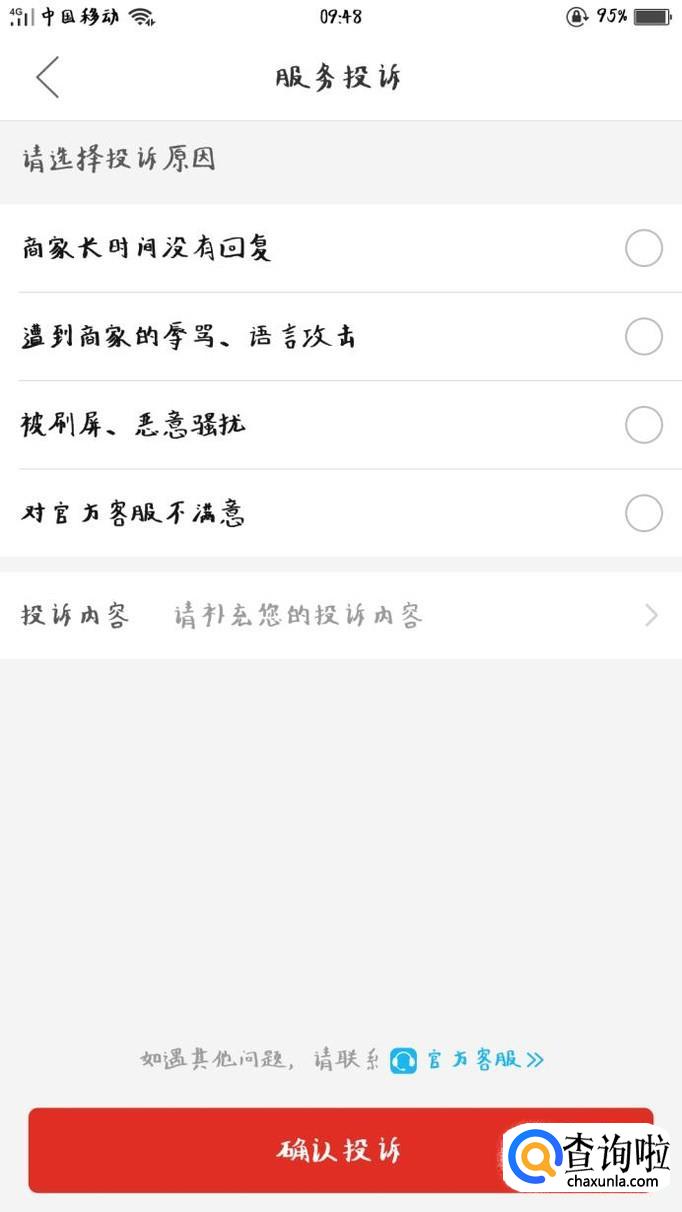 编辑好投诉原因及内容等相关信息,点击“确认投诉”即可。
