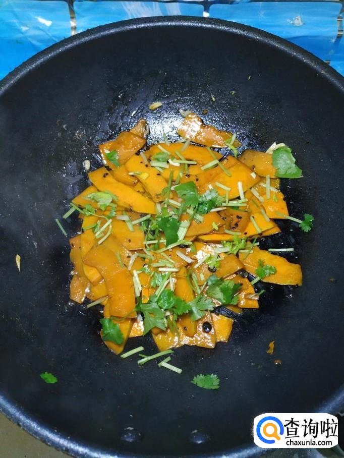 炒好之后,出锅装盘,趁热就可以吃了,这样炒出来的南瓜鲜香可口,感兴趣的朋友可以尝试来做一下。