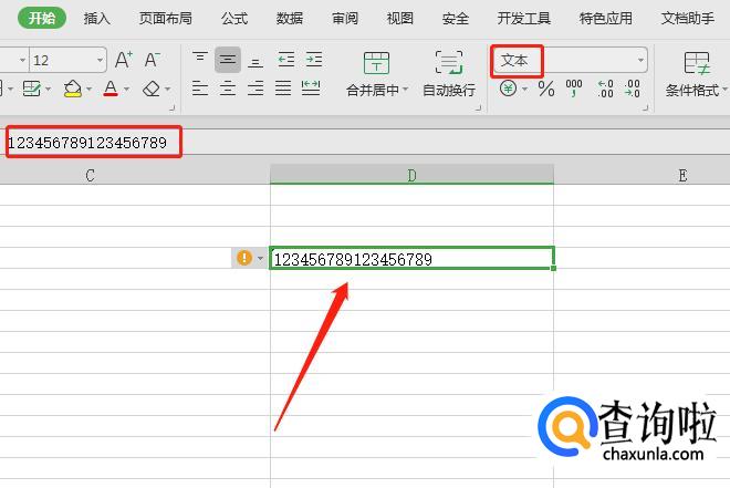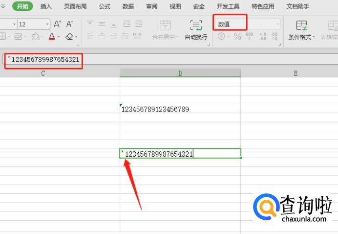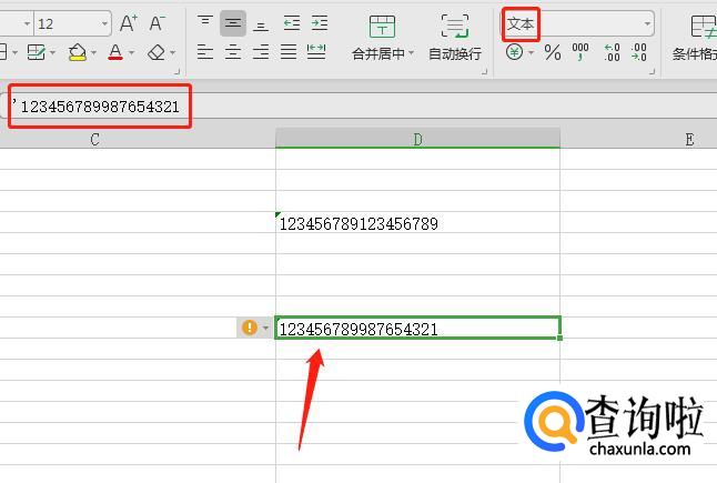 接着重新输入数值,大于15位数之后的数字就不会变成0了,现在数字的格式是文本格式。