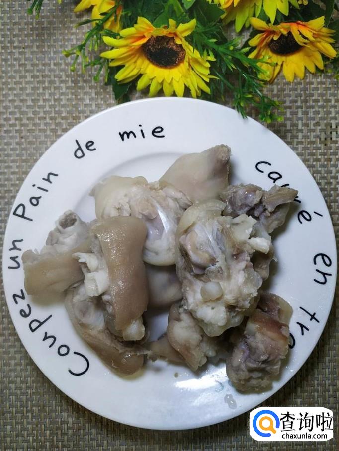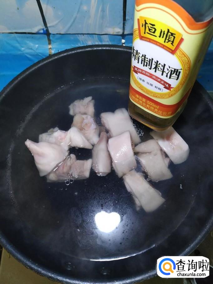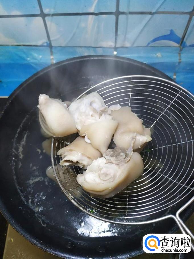 准备适量猪蹄子,用清水洗净,锅中烧开水,水开后,将猪蹄子倒入锅中,煮五分钟左右,可以加入适量料酒同煮,这样可以有效去腥。