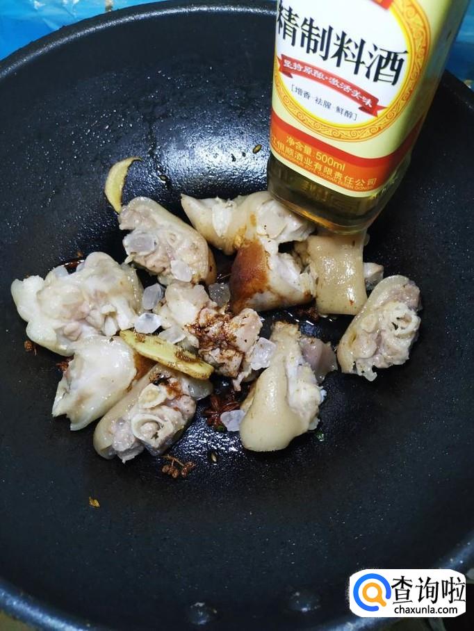 加入适量生抽,老抽,冰糖,再加入适量料酒,搅拌均匀。
