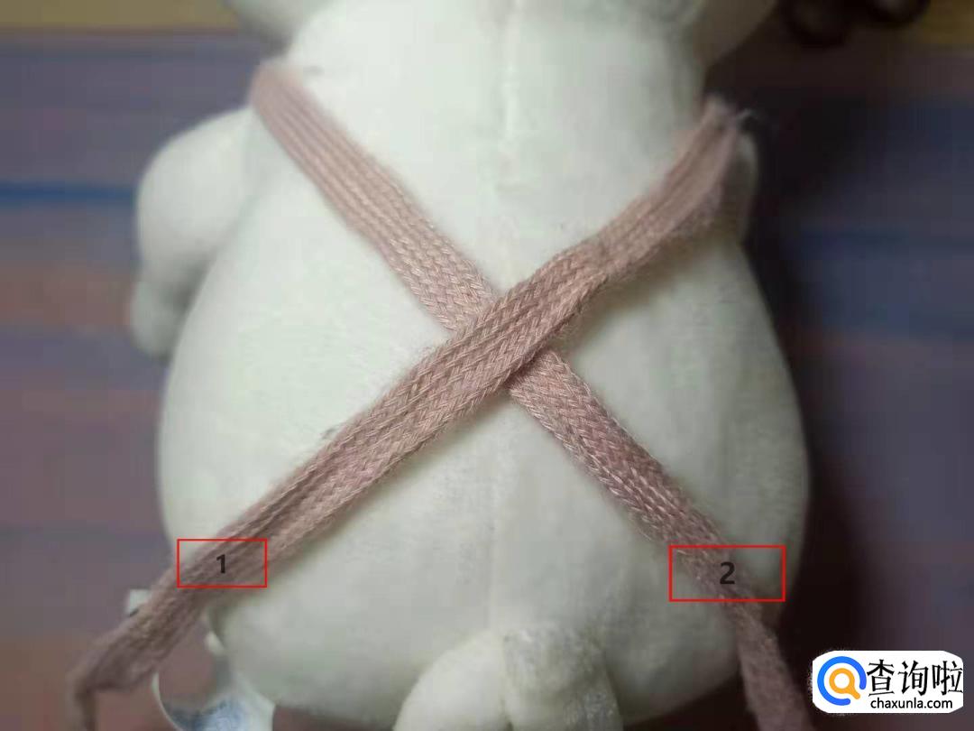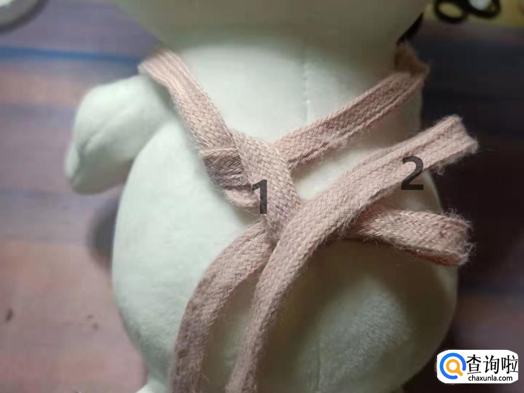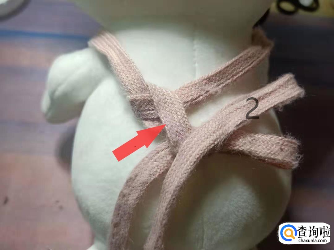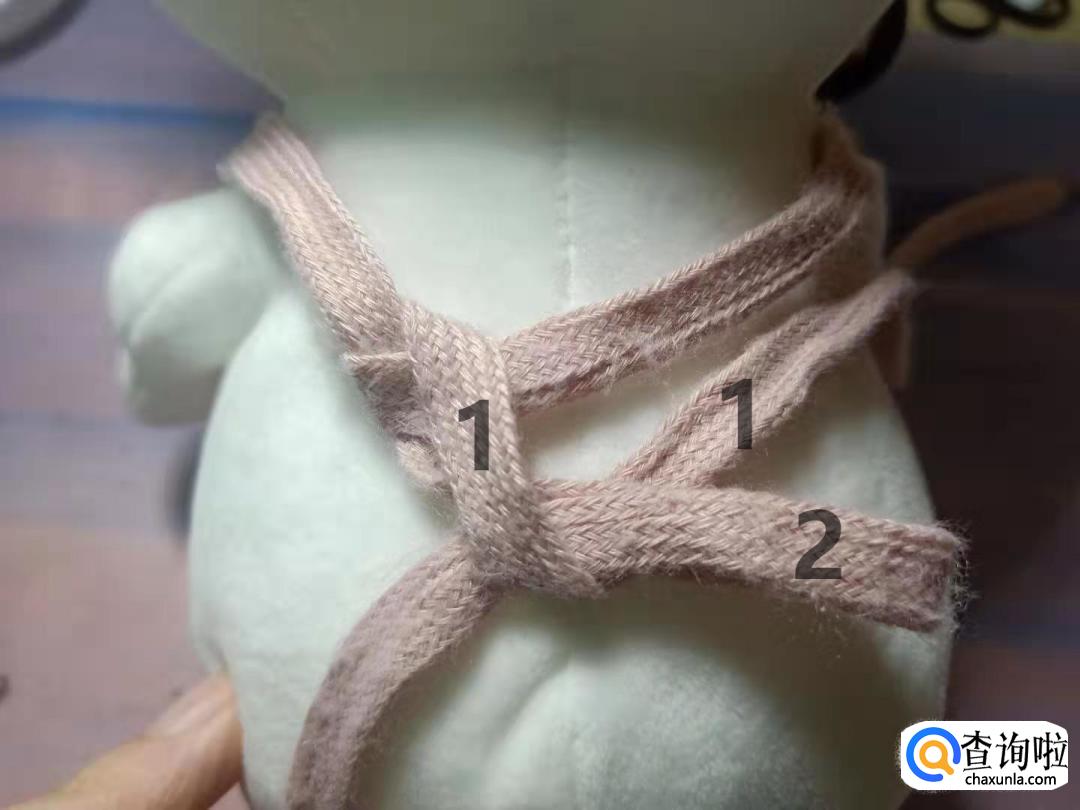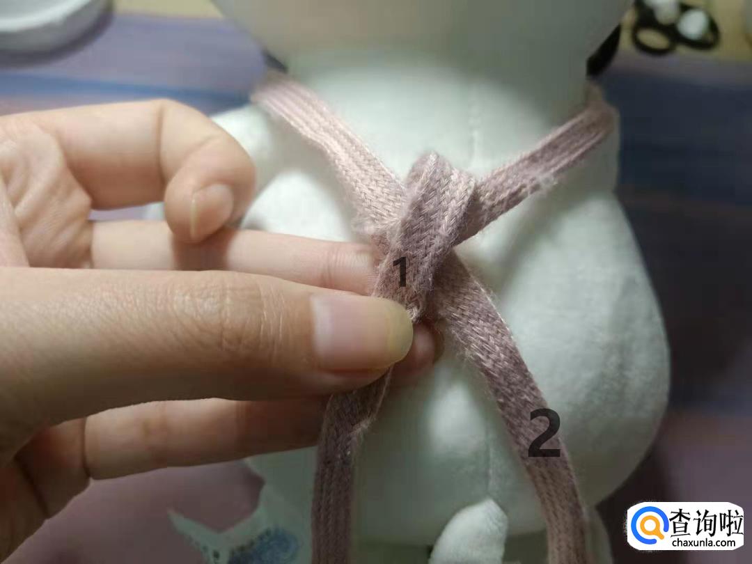 将2号带子折叠成蝴蝶结的另一边。
