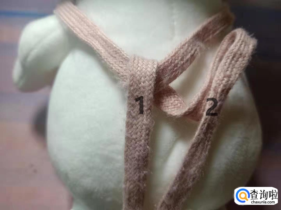 将1号带子从中间穿下来,打一个活结。