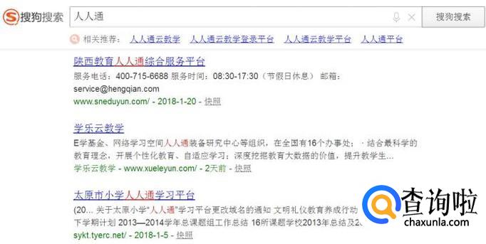 首先,在搜狗搜索框内输入“人人通”,然后选择你所在地区的人人通平台。小编这里以陕西省人人通为例。