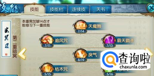 在第二重阶段的时候天舞技能+2,并且杀戮要点满,戾气+2就行了,聚灵咒也要点满,别的技能都不要。