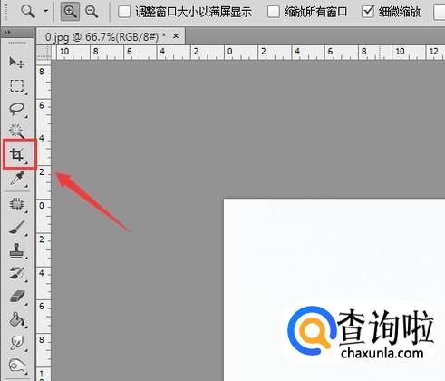 将图片打开之后,我们在工具箱内找到裁剪选项,如图所示: