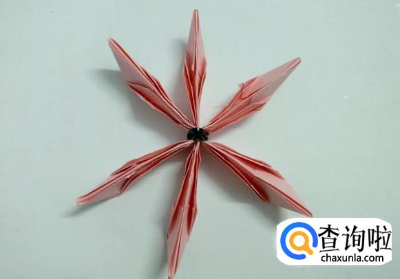 然后把上下两层花瓣轻轻翻折成下图的花朵状。