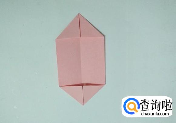 四个角分别折向中心线后把左右两边折向中心线。