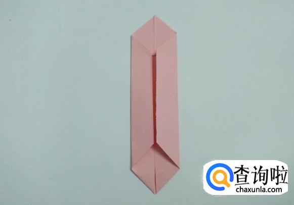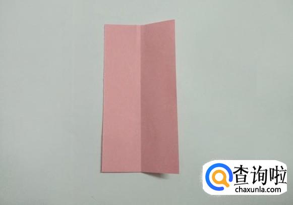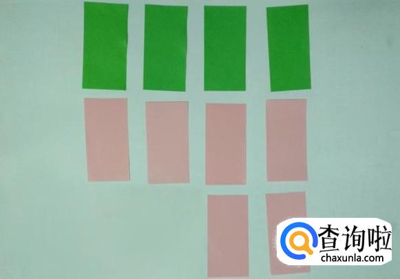 准备好尺寸一样的10张(绿色4张、粉色6张)折纸,然后把其中一张粉色长方形纸沿中心线对折后打开。