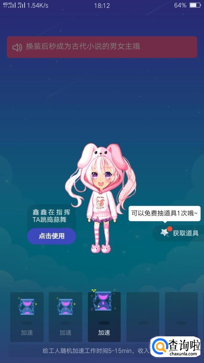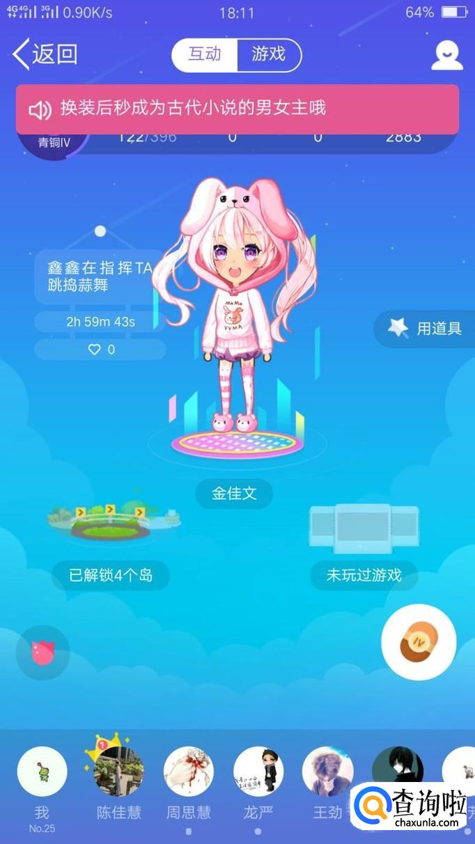抓到好友之后,点击进入被抓的好友的界面,在厘米秀角色的旁边有一个“用道具”,点击进入道具界面。