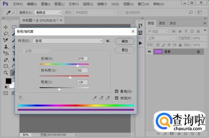 然后我们拼合图像。并使用色相饱和度调整拼合后的图片,参数如图所示。