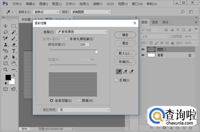 接着我们执行选择-色彩范围操作,参数如图所示。