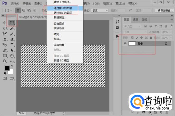 下面我们选择选区工具,在选区上面,鼠标右键点击,然后选择通过拷贝的图层。