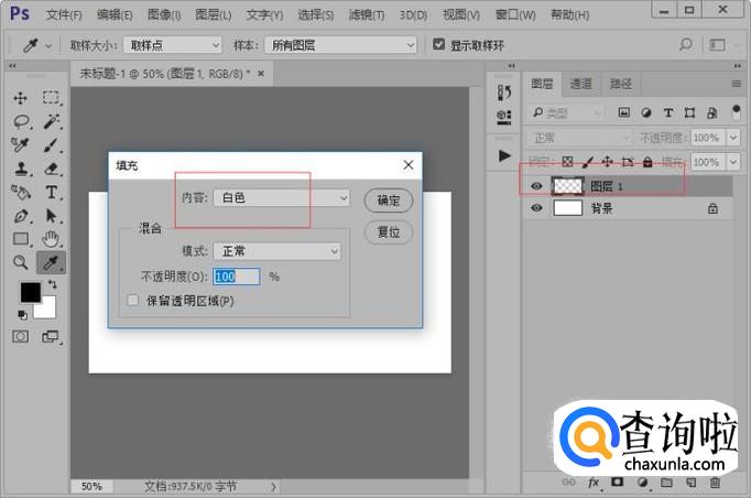 新建一个画布之后,我们再新建一个图层,然后给这个图层填充白色。
