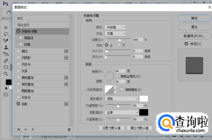 接下来我们给图层 1添加图层样式斜面和浮雕,参数如图所示。