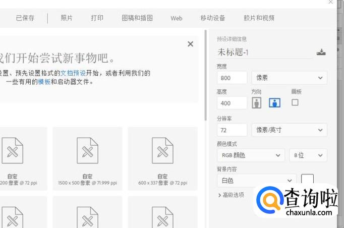首先我们需要打开电脑里面的ps软件。然后新建一个画布,画布的大小可以根据自己的喜好来设置。小编设置的参数如图所示。