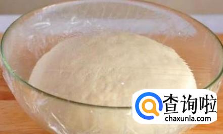 - 04                                                                                                            然后用薄膜盖住发酵。如果发酵的过程温度在25-30度左右面团就膨涨得快,但如果温度低于20度发酵的时间就会长些。如果是冬天可以用锅装适量的水煮到30都左右,熄火,然后把面团放到盘中再放置锅里盖住,这样发酵的速度就很快了。如果温度高于40度酵母菌会死,所以锅里的水不能超过40度。