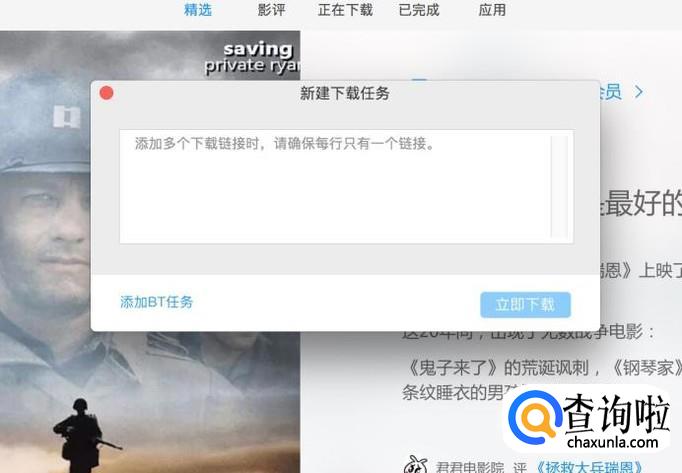 点击之后弹框提示新建下载任务,将找到的磁力链接复制进去,点击“立即下载”
