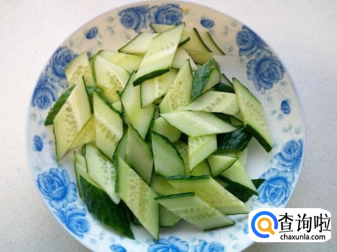 黄瓜用水清洗干净,控干水分,切成片。