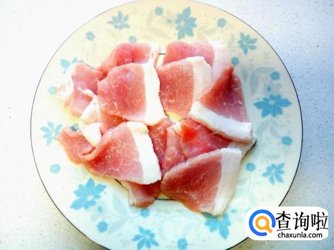 猪肉用水冲洗一下,控干水分,切成片。