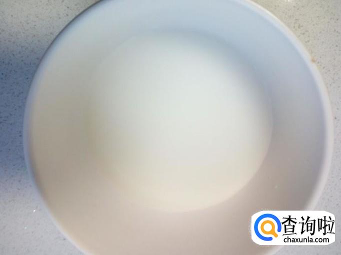 碗里放入一小匙儿淀粉,兑水勾成薄芡。