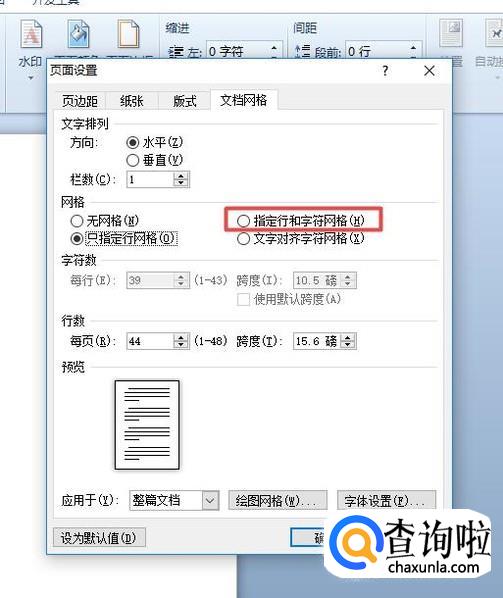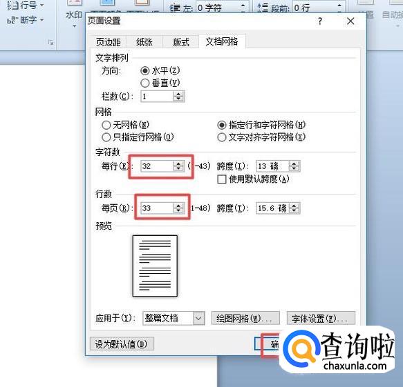 之后我们就可以设定每行的字符数了,这个也就是每行的字数了,然后我们设置每页的行数,最后,我们点击确定就可以了。