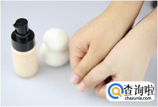 在试色的时候可以根据手腕静脉的血管颜色来判断,如果手腕血管呈蓝色、紫色-冷皮,冷皮的较适合:粉调、蓝调、紫调;如果手腕血管呈青色、橄榄色-暖调,暖调的则比较适合黄调或者绿色系的粉底液。确定以后选择对应粉底液色系下最白色。