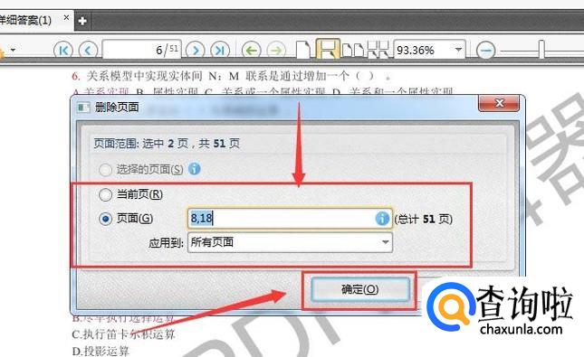 打开后,会弹出删除页面的窗口,在窗口内选择需要删除的页面的页数,选择完成后点击确认,页面就删除完成了。