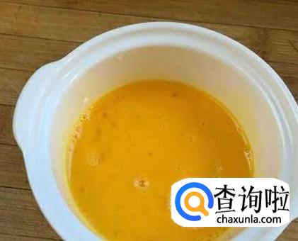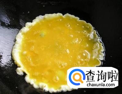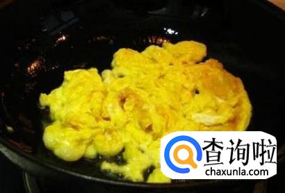 打2个鸡蛋到碗里,加适量的盐搅拌均匀,热锅下油,倒鸡蛋进去翻炒20秒左右。
