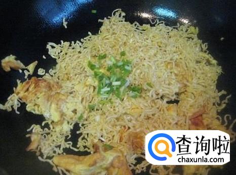 然后放方便面进去,加适量的方便面里的盐,撒点葱花。