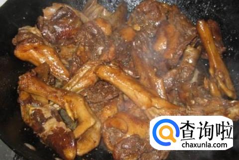 然后鸭肉下锅,加适量的盐、生抽、料酒、老抽翻炒1分钟左右。