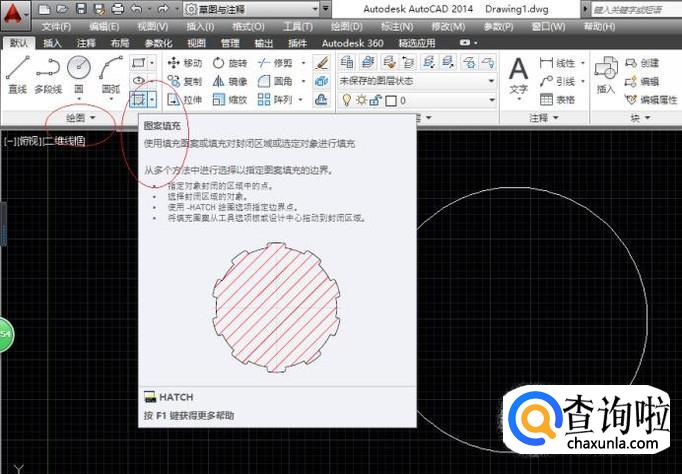 点击"默认→绘图→图案填充"图标,命令栏显示"拾取内部点或[选择对象(S)/放弃(U)/设置(T)]"。